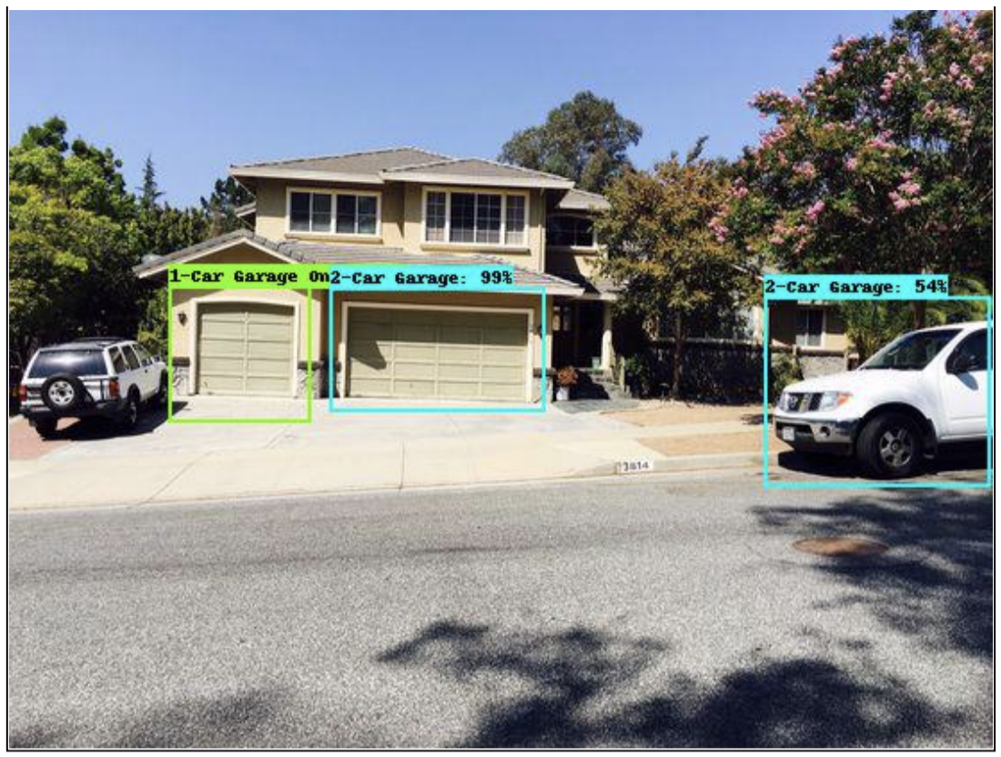 To jump start our project, we leveraged transfer learning with the Tensor Flow Inception model as our base. In this way, we did not have to build and train a whole deep learning model, just the last layers of one. We started with just single-car, garage doors and then augmented the model to also detect two-car, garage doors. After hyper-parameter tweaking and determining we needed a confidence threshold of 85%, we were able to produce some great results. Our model specifically had an accuracy of 89.4% and a precision of 87.6%.